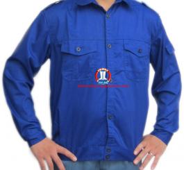 Tính chất hàng hóa: Áo được may bằng chất liệu vải chéo Nam Định - Việt Nam ( 55% cotton , 45% nilon ), Áo kiểu bu dông có đai, cổ đức, Áo may chung cho nữ & nam Áo có sẵn nhiều cỡ, mầu xanh dương, dài tay, còn các mầu khác thì phải đặt may riêng. Áo may Kiểu bu dông nên rất thông thoáng, tạo cảm giác thoải mái cho người mặc, thích hợp với công nhân sản xuất của các ngành nghề Thích hợp cho nghành xây dựng, cơ khí, cho công nhân thời vụ.